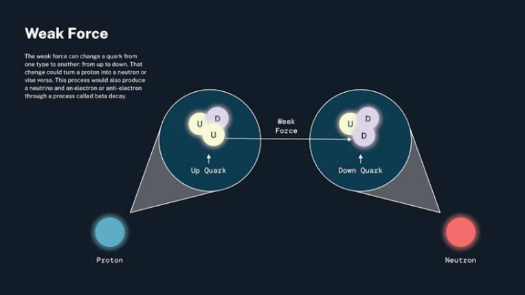 تتحكم القوة النووية الضعيفة في التحلل الإشعاعي وتلعب دورًا في عمليات الاندماج النووي التي تزود النجوم بالطاقة مثل الشمس. وبدون التوازن الدقيق لهذه القوة، ستحترق النجوم بسرعة كبيرة جدًا أو ببطء شديد، مما يؤدي إلى تعطيل إنتاج الطاقة الضروري لاستدامة الحياة على الأرض. يتأمل الكتاب المقدس في عظمة خليقة الله، مؤكداً على حكمته في دعم كل الأشياء: “فَإِنَّهُ فِيهِ خُلِقَ الْكُلُّ: مَا في السَّمَاوَاتِ وَمَا عَلَى الأَرْضِ، مَا يُرَى وَمَا لاَ يُرَى، سَوَاءٌ كَانَ عُرُوشًا أَمْ سِيَادَاتٍ أَمْ رِيَاسَاتٍ أَمْ سَلاَطِينَ. الْكُلُّ بِهِ وَلَهُ قَدْ خُلِقَ. الَّذِي هُوَ قَبْلَ كُلِّ شَيْءٍ، وَفِيهِ يَقُومُ الْكُلُّ” (كو 1: 16-17).
