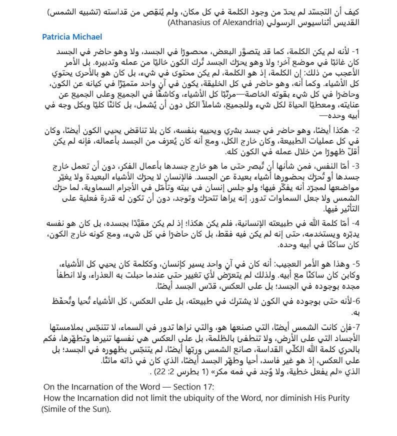كيف أن التجسّد لم يحدّ من وجود الكلمة في كل مكان، ولم يُنقِص من قداسته (تشبيه الشمس)